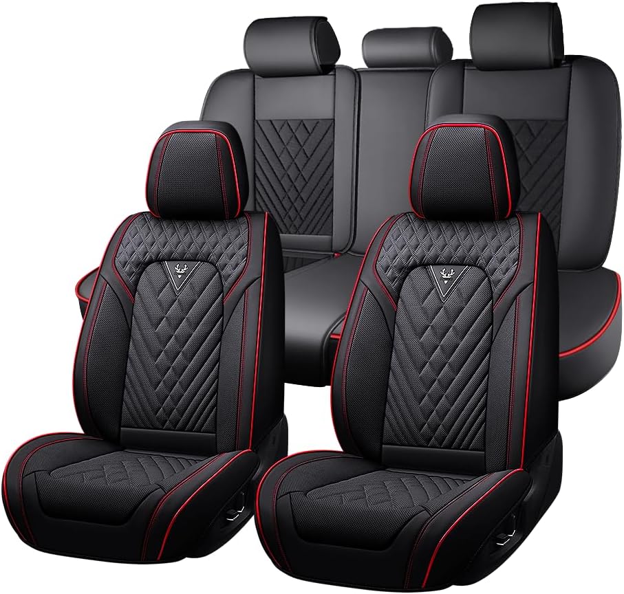 Nappa Leather, 360° Full Protection, Thick Padding & Memory Foam, Waterproof & Stain-Resistant Car Seat Cover (Full Set,Black)